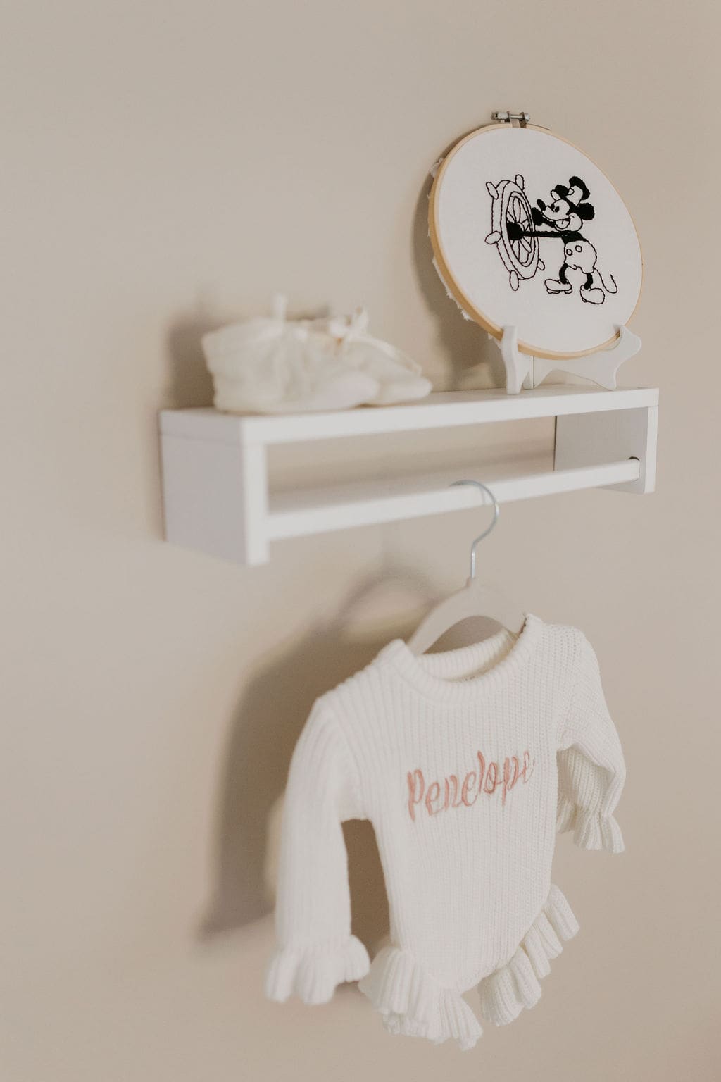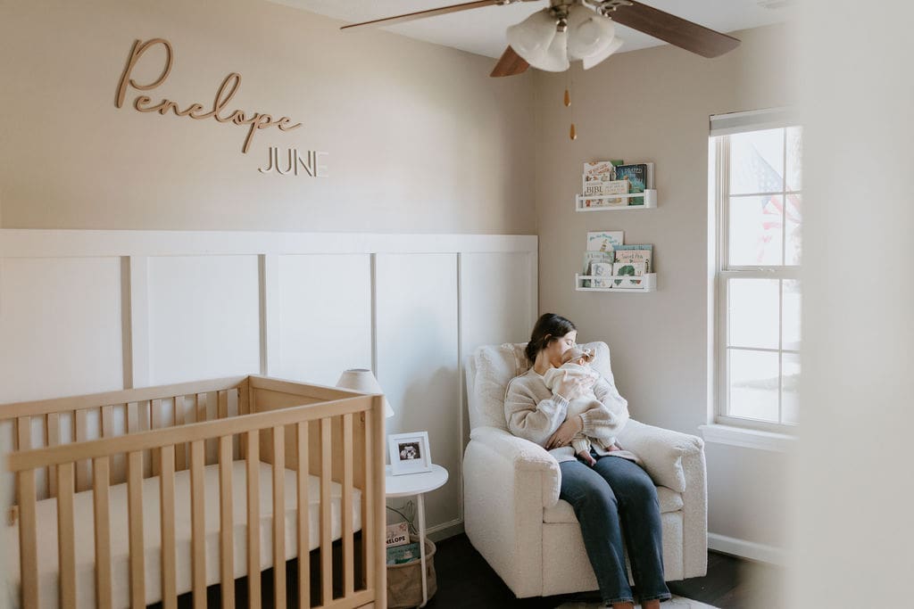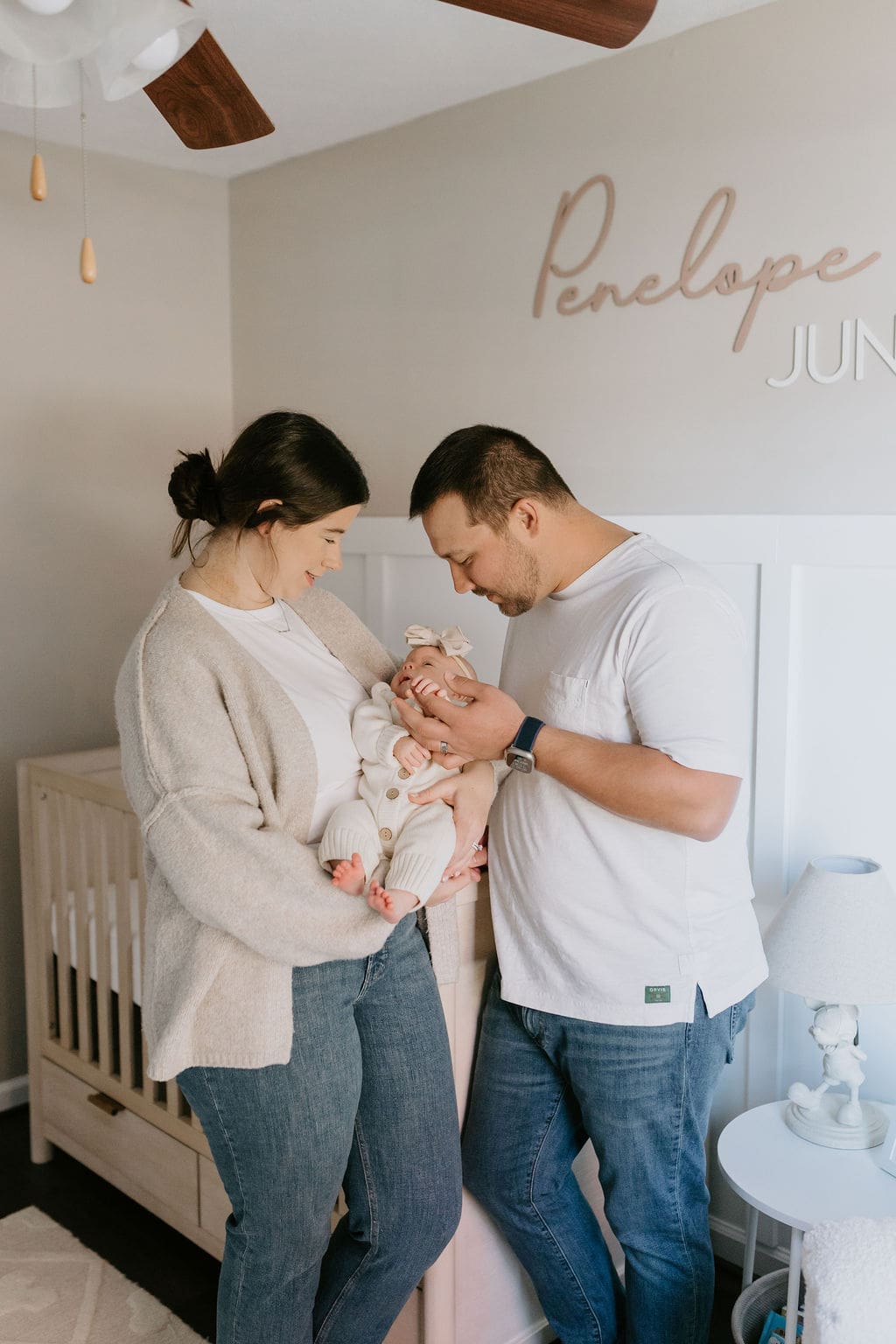 Penelope was such an easy little one to photograph. I love that we were able to get photos of her both awake and asleep, and even some shots of a quick little bottle feed. Her nursery was glowing in the afternoon light, and I loved all of the white, light pinks, and subtle nods to vintage Disney decor. The decor throughout this home made for the perfect backdrop for photos. So many great little pockets of light.