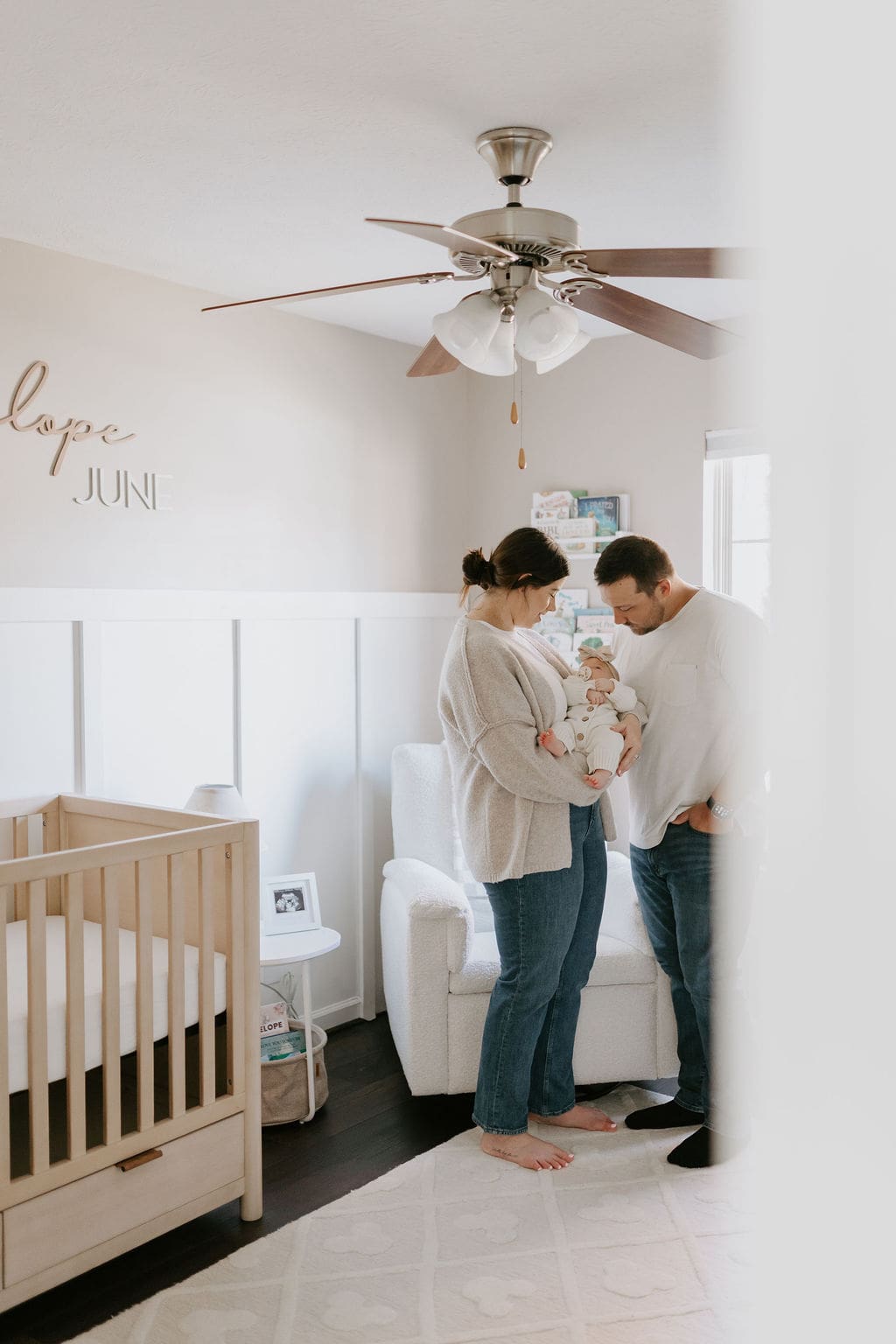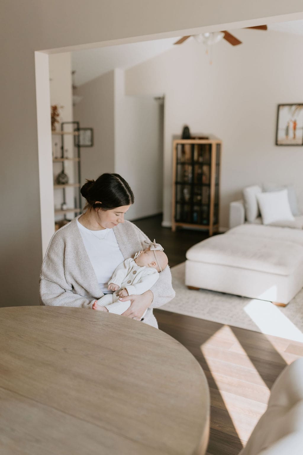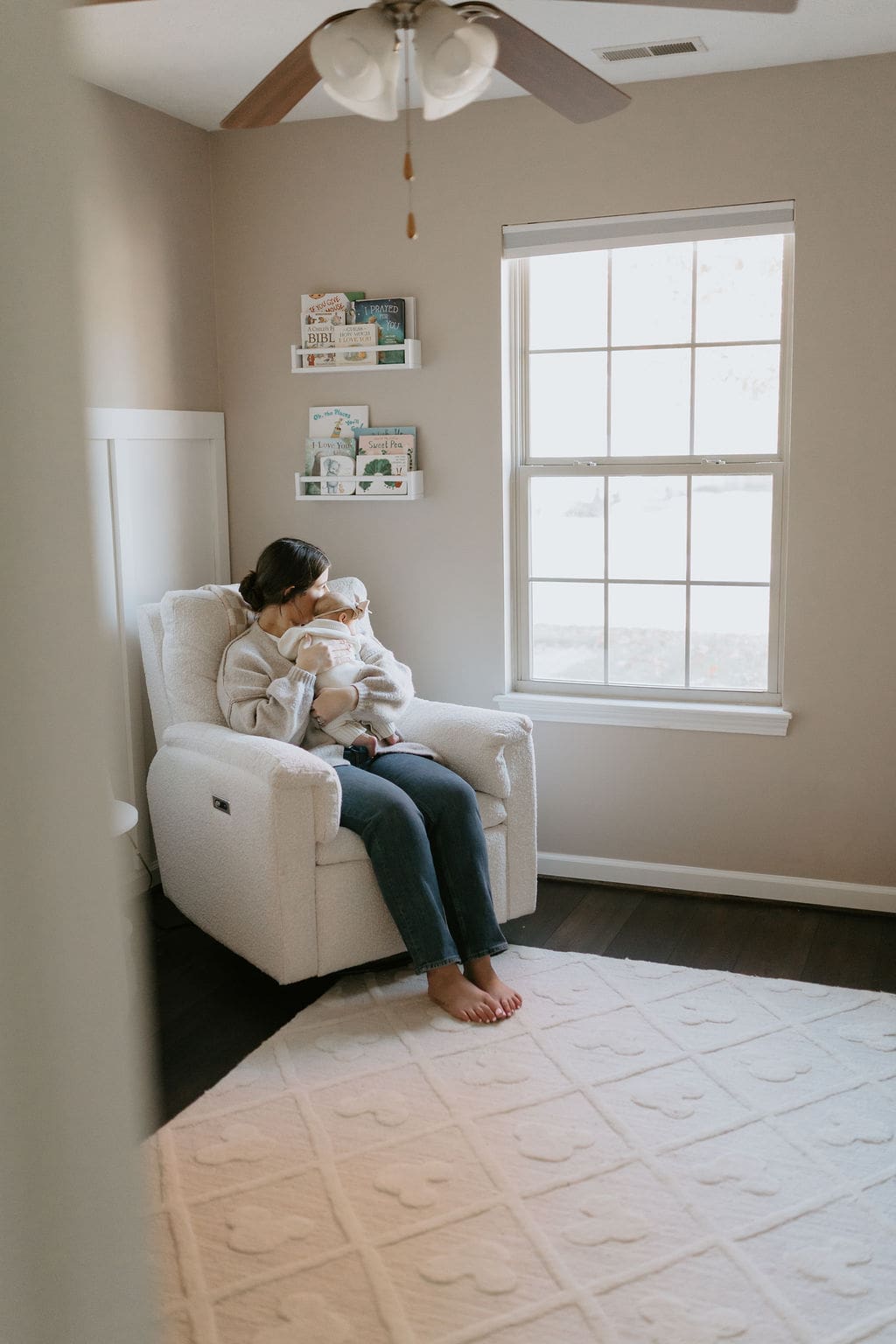 Penelope was such an easy little one to photograph. I love that we were able to get photos of her both awake and asleep, and even some shots of a quick little bottle feed. Her nursery was glowing in the afternoon light, and I loved all of the white, light pinks, and subtle nods to vintage Disney decor. The decor throughout this home made for the perfect backdrop for photos. So many great little pockets of light.