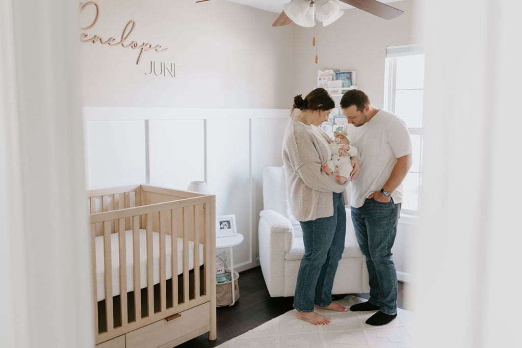 When I first arrived I noticed how much I loved the quaint dining room, and I asked if we could grab a few photos there. It was an unconventional ask, but I’m so thankful that these two trusted my vision and we went for it! We were able to use so many places throughout the home, partly because there were so many good lighting options and partly because Penelope was being such a champ – we were able to fly right through so many spots and poses. We ended up with a gallery with so much love, connection, and variety!