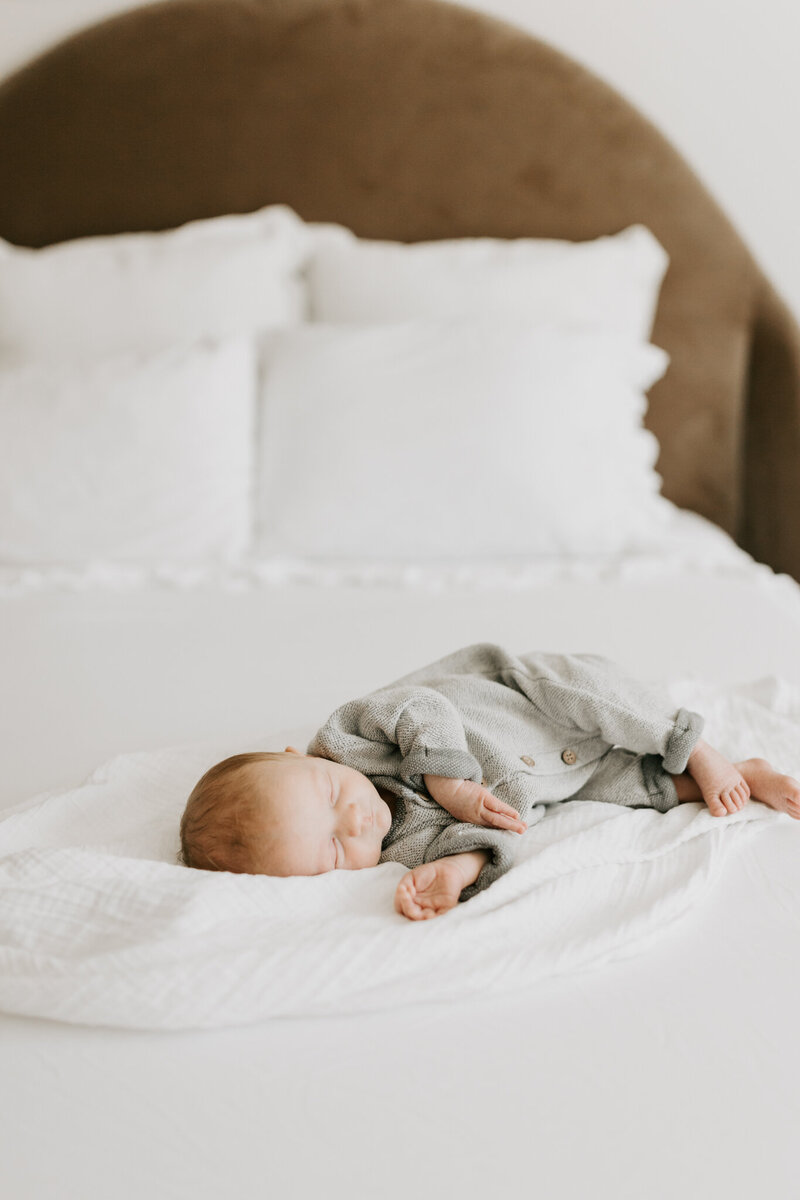 A baby-led approach to newborn photography sessions looks like breaking any time for bottles and diaper changes, lots of time and space to cuddle and comfort your baby, and less pressure for baby to sleep on a certain timeline.